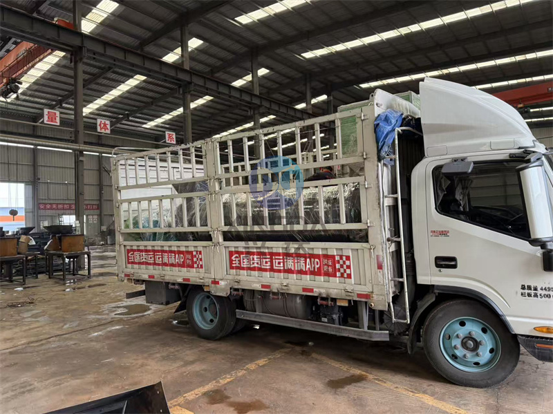 一车准备发往出口港口的有机肥搅齿造粒机准备出厂了
