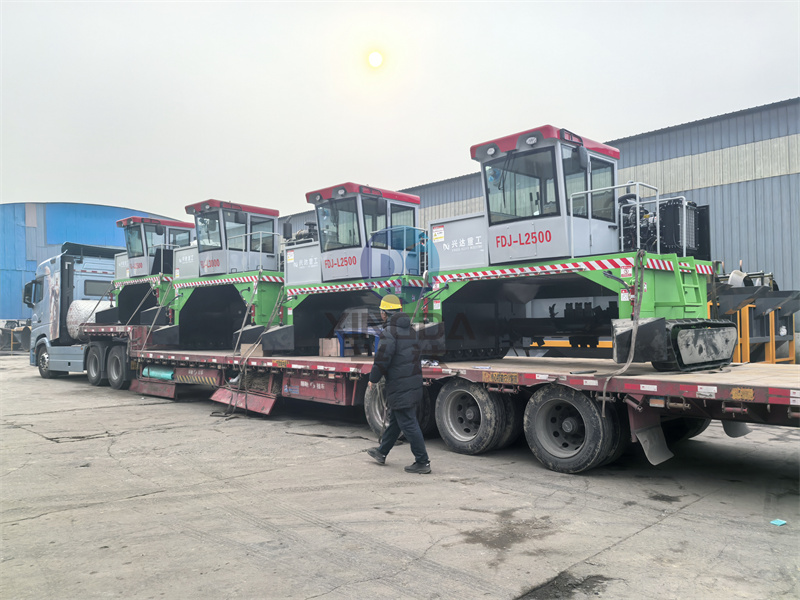 湘西多台有机肥翻抛设备履带翻抛机正在装车:兴达重工科技公司是专注于生产有机肥设备的厂家,种类多,型号全。履带翻堆机属于地面堆放发酵设备,是目前较节省土建、人力资源的一种制肥模式。需将物料堆成长形条垛由翻堆机定时对物料实施搅拌、破碎,在好氧条件下进行有机物的分解。兼有破碎的功能,大大节省了时间和劳力,使有机肥厂生产效率和产品质量有显著提高,成本大大降低。不仅比深槽发酵速度快的多,还有效防止了发酵过程中硫化氢、胺气、吲哚等有害、恶臭气体的产生,符合环保要求。