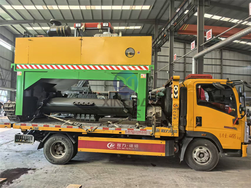 为徐州客户打造的一台有机肥履带翻抛设备正在装车中:履带翻堆机采用履带行走占地少、转弯灵活、可以原地掉头、提高物料堆放场地利用率。机器整体结构合理,整机刚性好、受力平衡、简明、结实、易操控、对场地适用性强,除粗壮的机架,零部件均为标准件,使用维护方便。行驶中整车骑跨在预先堆置的长条形肥基上,由