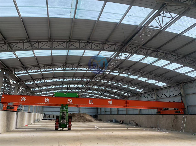 宁夏客户有机肥生产线设备抵达现场后开始安装轮盘翻抛机:轮盘式翻抛机是整套有机肥生产线中的一款有机肥翻堆设备。在有机肥生产线中担当起到翻抛物料的作用。轮盘式翻抛机设备采用中间链条传动机构,带动两大直径翻抛轮盘,对称翻抛,无死角可调速移位小车,左右位移,低能耗完成大跨距翻抛工作。在堆放物料深度较深的情况下,通过的节能型传动机构,使用较小的动力,来完成高深度、大跨距的翻刨作业。其液压升降系统,可是翻盘大盘自动升降,确保设备能够进行无障碍移动。另外,配套的全自动化电气控制系统,进一步确保设备操作方便,可靠。轮式翻抛机可根据发酵槽的宽度定做不同跨度。