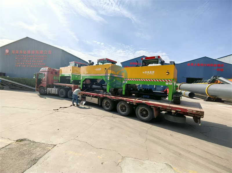 一台又一台有机肥翻抛设备履带翻抛机的出货现场
