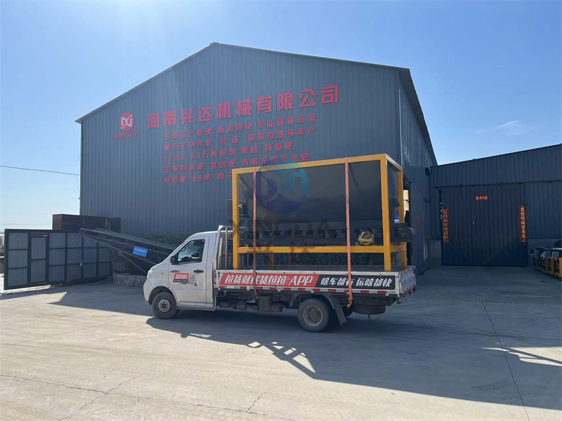 有机肥设备铲车料仓已准备完毕正在驶出有机肥设备厂家:有机肥生产线设备铲车料仓作为物料加工过程中的原料仓使用,适用于铲车装填物料,出料时可实现匀速不间断输出,从而节省人工,提高工作效率。该机由机架、壳体、缓冲网、输送机组合而成。采用国标电动机,具有动力强劲、省电节能、质量可靠、超负荷运行的特点。机架是由槽钢、方钢焊接而成。壳体是由耐磨钢板焊接而成。缓冲网是由钢筋焊接成150-200mm方格网状。输送机是采用耐磨皮带制作成皮带输送机。