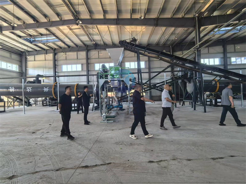 使用现场:年产3万吨颗粒有机肥生产线试机后的验收使用现场:颗粒有机肥生产设备是一种专门用于生产颗粒状有机肥料的机械设备。这种设备通常包括混合装置、造粒机、干燥系统和冷却装置等关键组件。混合装置负责将各种有机原料,如畜禽粪便、农作物秸秆和食品废弃物等,均匀混合,确保营养成分的均衡分布。造粒机通过旋转和挤压作用,将混合好的物料制成均匀的颗粒,这些颗粒不仅便于储存和运输,还能提高肥料的利用率。干燥系统利用热风或蒸汽对颗粒进行烘干,去除多余水分,防止颗粒在储存过程中发霉变质。最后,冷却装置通过冷空气或冷水对干燥后的颗粒进行冷却,使其温度降至常温,便于包装和销售。整个生产过程高效节能,符合环保要求,是现代农业中不可或缺的重要设备。