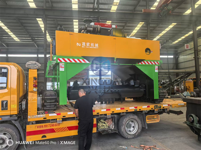前往驻马店的米有机肥翻抛设备履带翻抛机正在装车进行中:履带翻抛机是河南兴达公司整套有机肥生产线中的一款有机肥翻堆设备。在有机肥生产线中担当起到翻抛物料的作用。 履带式翻堆机水分大的物料原地不会打滑爬窝现象终身不会更换轮胎拉杆操作原地转弯调头淘汰了方向盘式原地无法调头的烦恼节省场地人工柴油国内