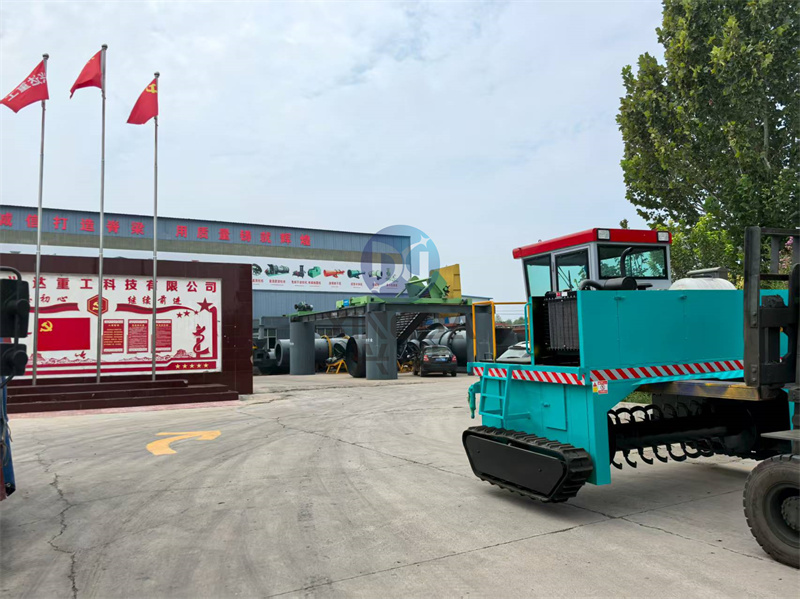 一台准备发往晋中的有机肥翻堆设备履带翻抛机正在装车: 在实际应用中,履带翻堆机可以根据不同的有机物料类型和处理量选择合适的型号和配置。例如,在处理畜禽粪便时,可以选择配备更强动力和更大翻抛能力的机型而在处理农作物秸秆等较轻质物料时,则可以选择