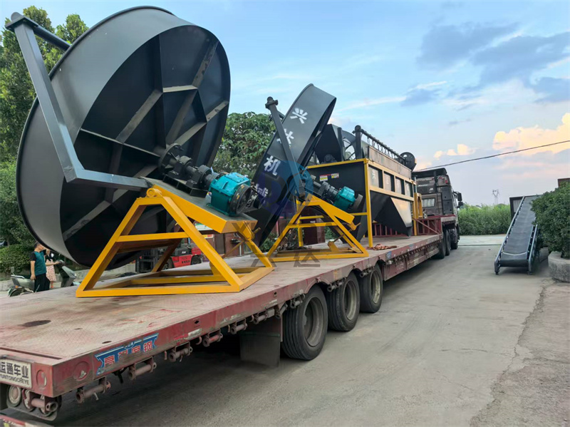 出货陕西:颗粒有机肥生产线设备2台圆盘造粒机与立式粉碎机准备出货: