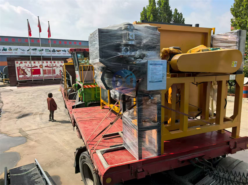 一车为眉山客户打造的的年产万吨有机肥生产线设备已经出发:有机废弃物被送入生产线,经过预处理单元(如破碎、混合、筛分等)后,进入发酵池进行发酵。发酵过程中,微生物菌群不断繁殖,将有机废弃物分解成稳定的有机肥料。发酵完成后,发酵液被泵入离心机进行分离,分离出的有机肥料返回发酵池继续使用。分离出