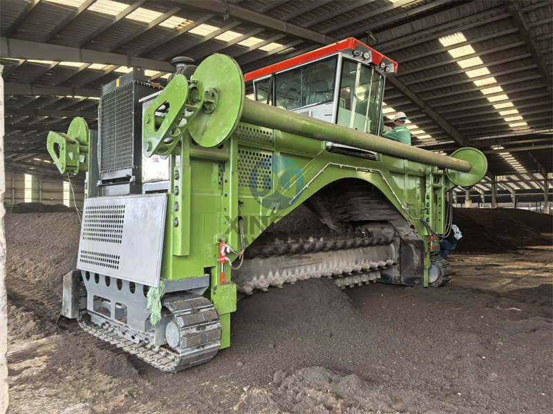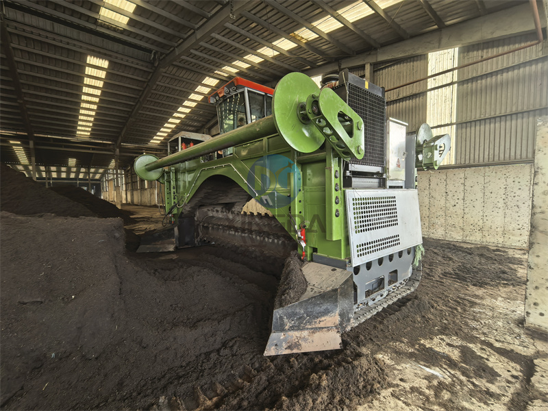 试机现场:安装完成后跟客户一起了解5米宽的液压履带覆膜翻抛机的试机: