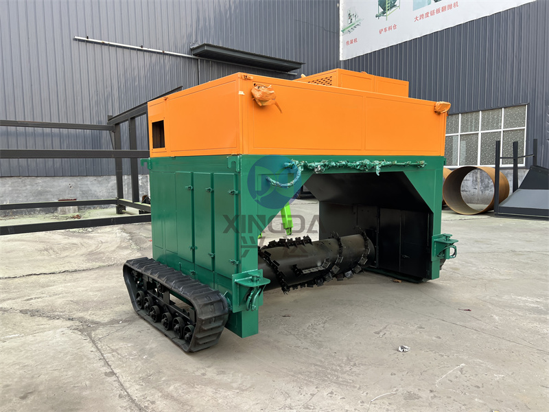 履带翻抛机是整套有机肥生产线中的一款有机肥翻堆设备。在有机肥生产线中担当起到翻抛物料的作用。 履带式翻堆机水分大的物料原地不会打滑,爬窝现象,终身不会更换轮胎,拉杆操作原地转弯调头,淘汰了方向盘式原地无法调头的烦恼,节省场地,人工柴油等。 铜川免烘干生产线设备履带翻抛机适用于畜禽粪便、污